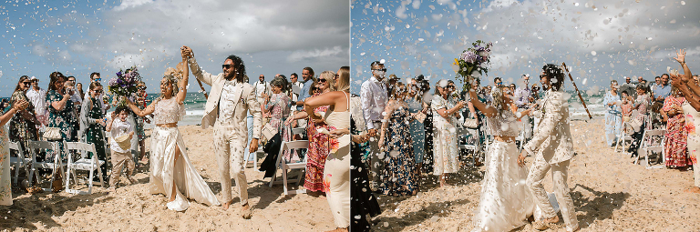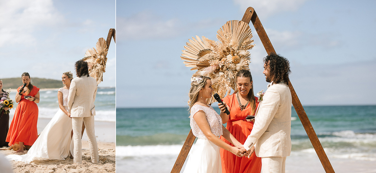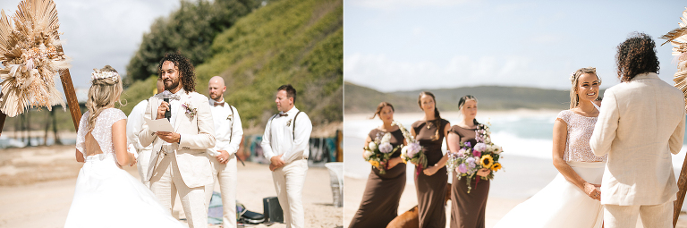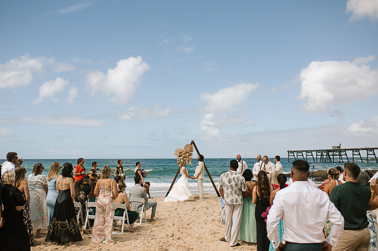 Sereena & Michael planned a carefree beach celebration for their wedding. Guests traded shoes for sand and watched as the couple exchanged vows on a perfect summers day. The salty air and the lapping waves set the scene for some amazing photos and the surf club was the perfect spot to dance the night away too.